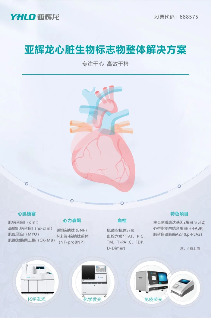 目前,亚辉龙心脏生物标志物整体解决方案已可涵盖心梗、心衰等心血管诊疗场景,有着操作便捷、结果准确、可重复性好等突出优势,可为临床提供高质高效的检测结果,有效协助临床对心血管疾病患者的全程管理。相信随着研究和应用的不断深入,亚辉龙心脏生物标志物整体解决方案将为更多的心血管患者带来福音。