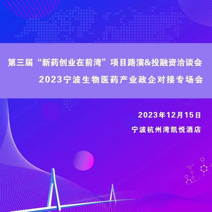 生物医药作为中国七大战略性新兴产业之一,是健康中国建设的重要基础,也是宁波市重点聚焦的战略性新兴产业。为深入推进生物医药产业高质量快速发展,优化全球临床开发和跨境合作,促进技术成果推介和供需对接,“第二届中国·宁波生物医药产业发展大会”暨“第三届新药创业在前湾项目路演&投融资洽谈会”将于2023年12月15-17日在前湾新区宁波杭州湾凯悦酒店举办。会议将围绕创新药研发、细胞基因疗法、AI与合成生物学、小核酸药物研发、中药现代化等专题进行探讨交流,深度融合行业资源和产业资本,共同推进生物医药产业的蓬勃发展。诚挚地邀请您拨冗出席本次盛会!