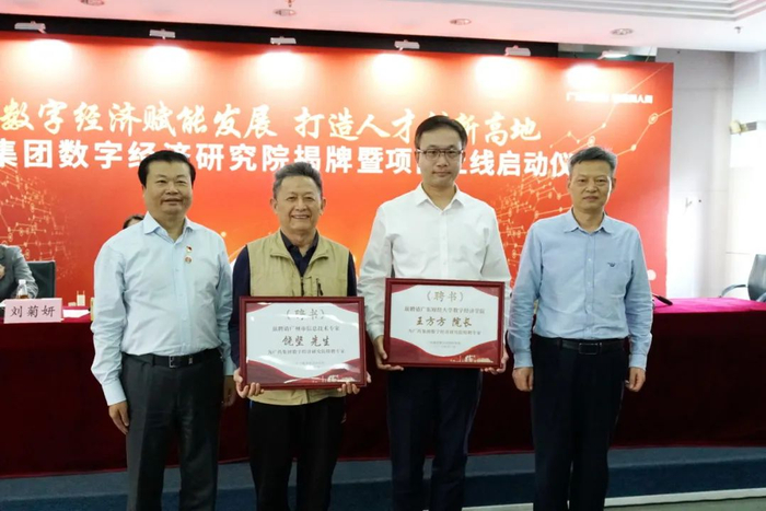 在本次活动中,广药集团聘请广东财经大学校长于海峰、广东省数字政府专家陈少媚、广东财经大学数字经济学院院长王方方、广州市信息技术专家饶坚担任广药数字经济研究院特聘专家。