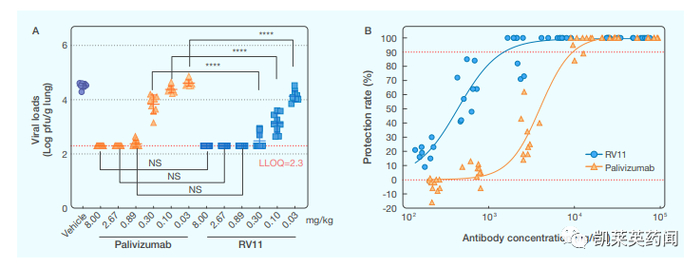 RV11对小鼠RSV肺部感染具有保护作用,体内结合效力是帕利珠单抗的6.3倍。