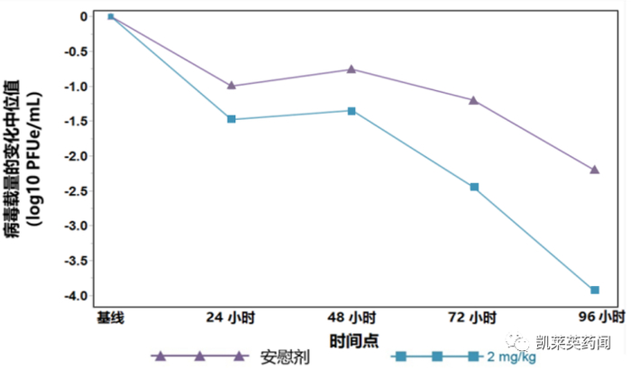 AK0529 Ⅱ期临床试验治疗组与安慰剂组病毒载量对比情况