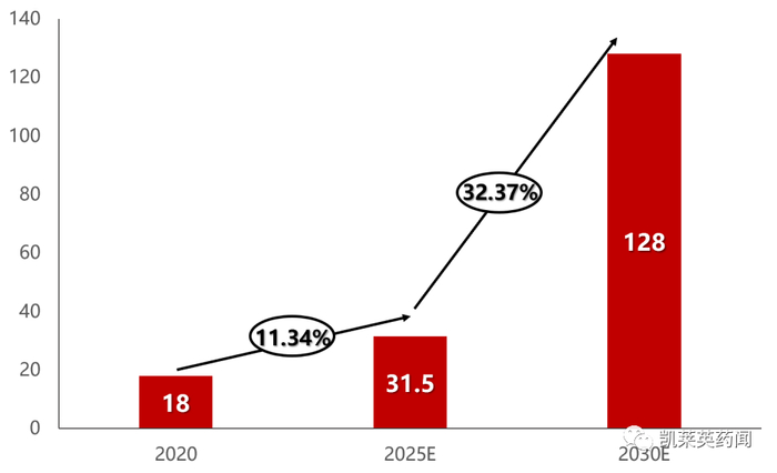 据灼识咨询研究数据显示,RSV 药物全球整体市场规模(包括治疗药物及预防药物),预计将从2020 年的18 亿美元增长至2030年的128 亿美元,年复合增长率达到21.4%。其中针对儿童的RSV 药物预计将从2020 年的18 亿美元增至2030 年的117 亿美元,将占全球RSV药物市场的91.1%.