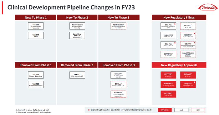武田在2023年第三季度财报中披露:由于一系列不可控因素,导致了公司的净亏损增长,武田将全年净利润预测下调了高达71%并且砍掉4条管线。