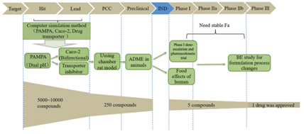 图2.新药发现和开发不同阶段的体外渗透性模型。PCC:临床前候选化合物;IND:研究性新药申请;ADME:吸收、分布、代谢和消除;PK:药代动力学;BE:生物等效性(来源于参考文献3)