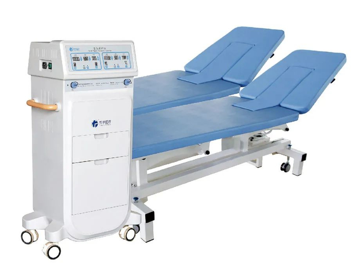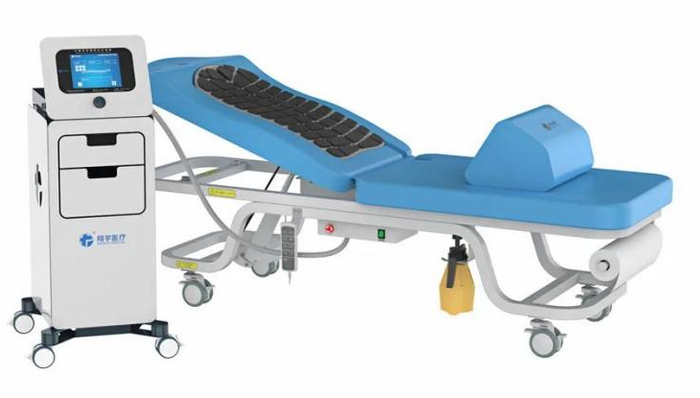 采用机械传动对患者进行腰椎、颈椎的牵引治疗,性能稳定,操作便捷。牵引治疗可暂时缓解脊柱压力,防止疼痛及神经压迫等加重症状。可居家和社区使用。