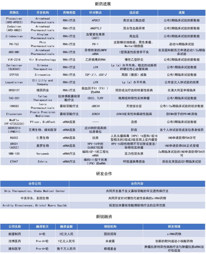 除了上述动态,RNA疗法领域还在11月迎来其他进展,限于篇幅,本文不再一一介绍。希望该领域迎来更多的新进展和突破,惠及更多患者。