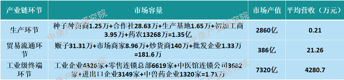 中药材产业链各环节营收差距