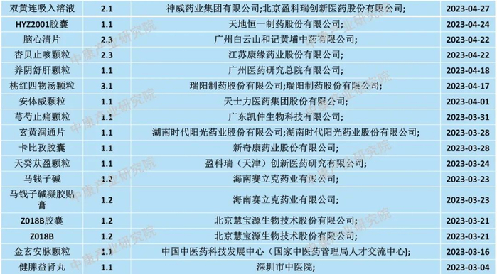 2023年获批上市的中药新药