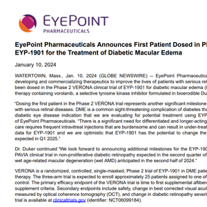EYP-1901治疗DME的II期临床试验VERONA首例患者给药