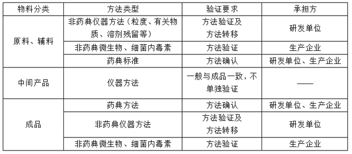 原辅料的方法学验证一般在中试之前完成,中间产品和成品的方法学验证一般在中试完成后用中试样品进行,并在工艺验证之前完成。此外,在研发单位完成方法学验证的分析方法需与生产企业进行方法转移。