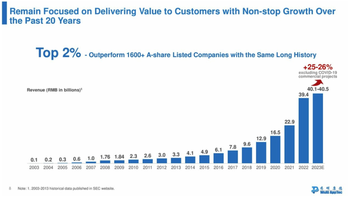 药明康德预计2023年收入400亿元左右,同比增长25-26%。
