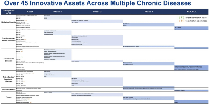 近年来,恒瑞医药积极拓展慢病领域,合计也有45款创新药在临床阶段。
