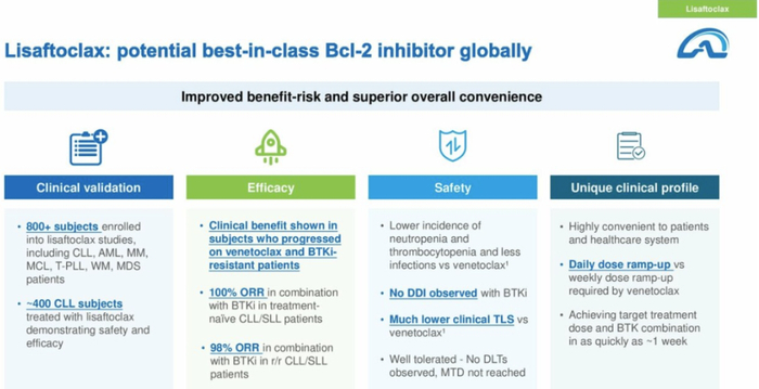 Lisaftoclax有望成为最优Bcl-2抑制剂。