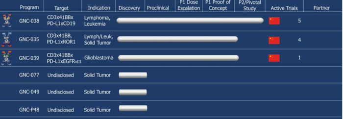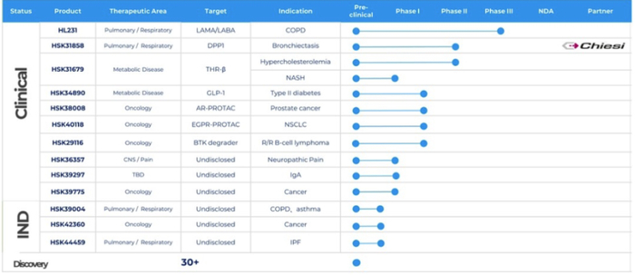 围绕三个技术平台搭建起下面的研发管线。