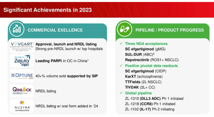 再鼎医药2023年取得一系列临床进展。
