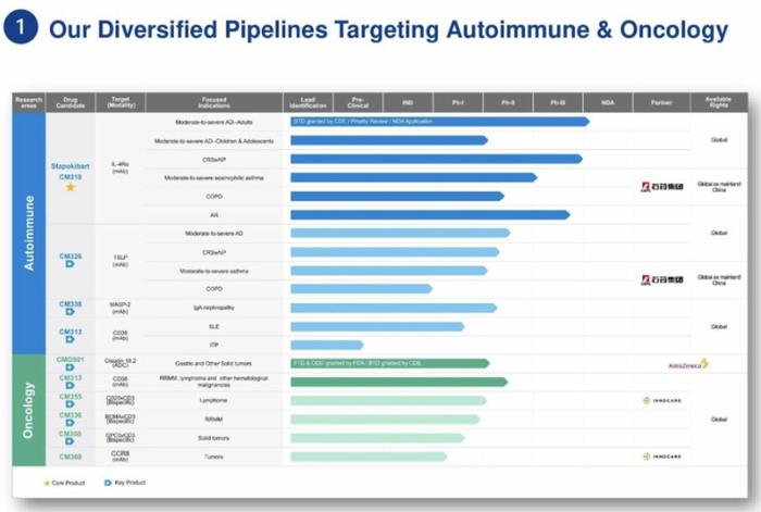 康诺亚IL-4R已经递交上市申请,围绕自免和肿瘤构建了丰富且具特色的研发管线。