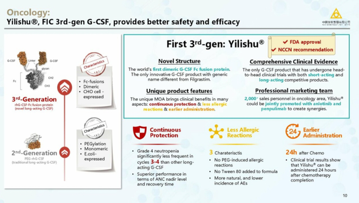 肿瘤领域创新药,中生制药重点介绍了艾贝格司亭(亿帆医药引进)、CDK2/4/6抑制剂、KRAS G12C抑制剂(益方生物引进)等。