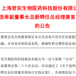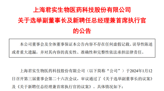 邹建军担任君实生物总经理兼首席执行官