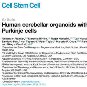 美国加州大学Keck医学院Giorgia Quadrato团队开发了一种人类小脑类器官(hCerO),可以让包含浦肯野细胞在内的功能性小脑细胞,在体外人源三维环境中长期健康存活和成熟。相关成果以“Human cerebellar organoids with functional Purkinje cells”为题,2024年1月4日发表在Cell Stem Cell杂志上。