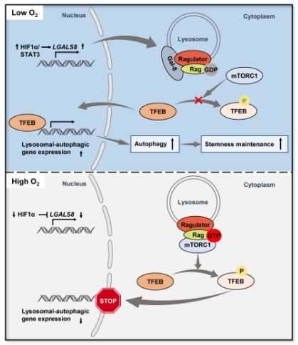 该研究发现低氧增强自噬可促进GSCs干性维持并鉴定出介导该过程关键靶点Galectin-8。本研究所揭示的Galectin-8-mTOR-TFEB信号轴将为靶向GSCs的GBM治疗策略提供依据。