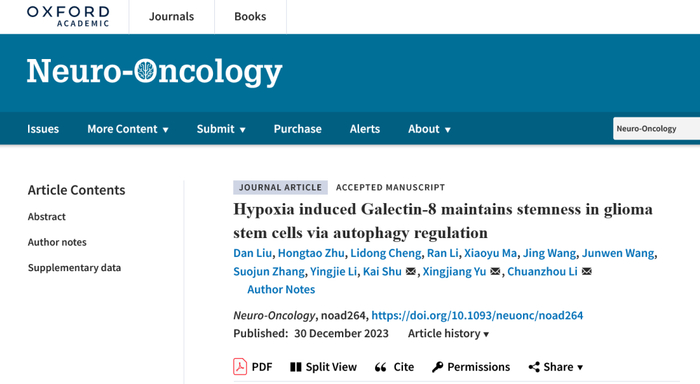 Neuro-Oncology | 李传洲/宇兴江/舒凯合作发现低氧诱导Galectin-8调节自噬促进胶质瘤干细胞干性维持的机制