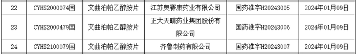 1月16日,中国国家药品监督管理局(NMPA)官网最新公示,江苏奥赛康药业有限公司、正大天晴、齐鲁制药、四川科伦药业申报的艾曲泊帕乙醇胺片获批上市。