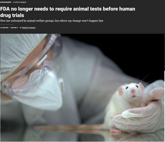 美国总统乔·拜登签署立法,新药无需在动物身上进行测试即可获得FDA的批准,这取代了1938年罗斯福签署《联邦食品、药品和化妆品法案》中的规定,即在动物中测试潜在药物的安全性和有效性。
