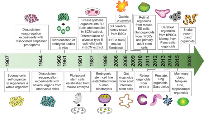 类器官相关研究早在上个世纪就开始了,而第一个类器官是2009年Hans Clevers小组产生的类似于天然肠道组织上皮的隐窝状结构,开辟了类器官发展的一个新纪元。
