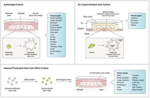 目前采用的类器官方法包括浸没式培养、气液界面培养和诱导多能干细胞中产生。