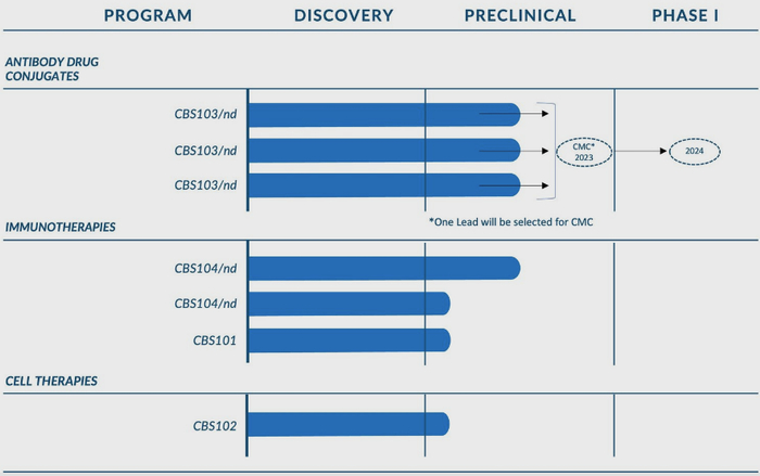 CellmAbs研发管线如下,均处于早期阶段,尚未披露靶点细节。