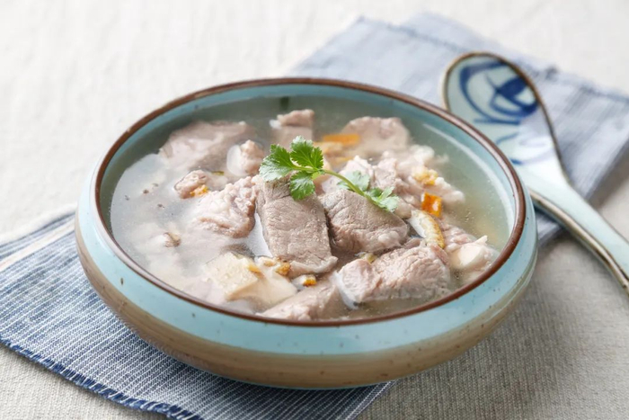 3. 把生姜、当归、羊肉放入砂锅中,加入清水、料酒、食盐,旺火烧开后撇去浮沫,再改用小火炖至羊肉熟烂即可。