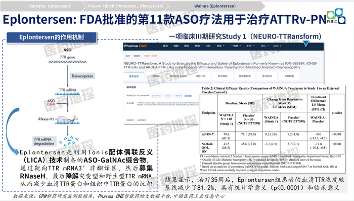 第3个药物是FDA批准的第11款反义寡核苷酸(ASO)疗法Wainua (Eplontersen)艾普龙特森用于治疗淀粉样变性的多发性神经病(ATTRv-PN)