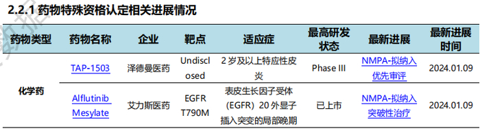 本周国内新药申报进展中,NMPA特殊资格认定药物共计2个,均为化学药2个。