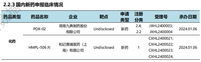 本周国内新药临床默示许可进展(部分)