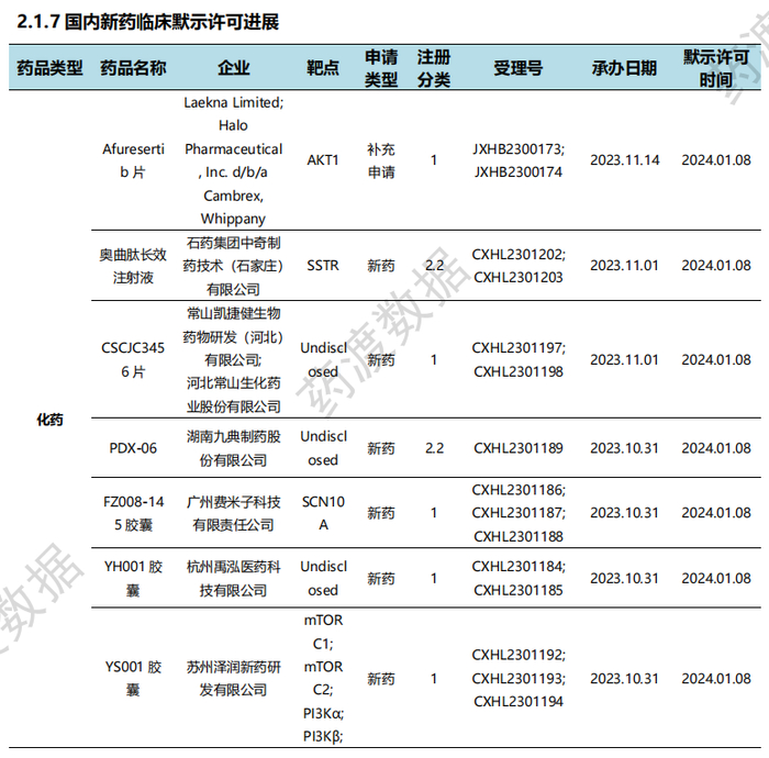 国内新药临床默示许可进展