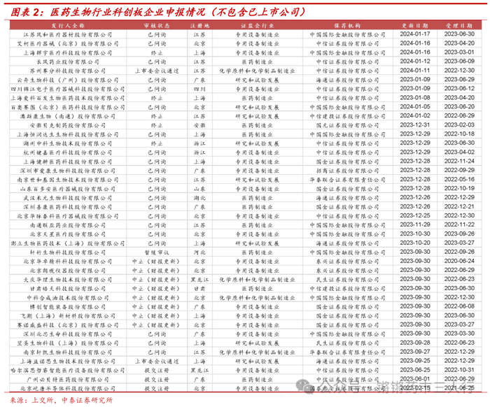 ■医药生物行业科创板申报情况:当前申报企业共40家,其中上市委会议通过1家,提交注册3家,上市委会已通过1家,暂缓审议1家,中止8家,已问询21家,终止5家;本周江苏风和、艾柯医疗已问询,上海捍宇已终止。
