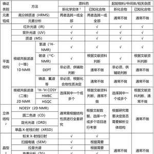 化合物结构初步确证后,按照相关指导原则,笔者根据化合物类别,对原料药(新化学实体、已知化合物)、起始物料/中间体/杂质(新化合物、已知化合物)结构确证的相关研究内容列表整理如下[1~3]。