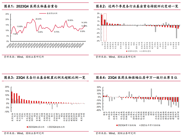 1. 医药生物重仓比例14.34%,连续三季度环比提升
