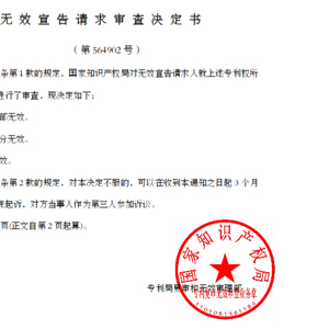 涉案专利(专利号为200980116857.7)由南京斯帕克医药科技有限公司于2023年7月提起无效宣告请求,国知局经审查,于2024年1月12日做出审查决定,基于专利法第22条第3款,宣告涉案专利全部无效(决定号:564902)。