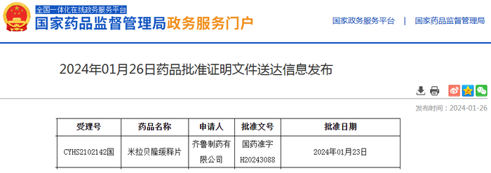 米拉贝隆缓释片仿制药企业申报上市情况