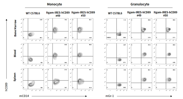 Fig1. Expression characterization of hCD89 in homozygous Itgam-IRES-hCD89 knockin mice in C57BL/6 background.