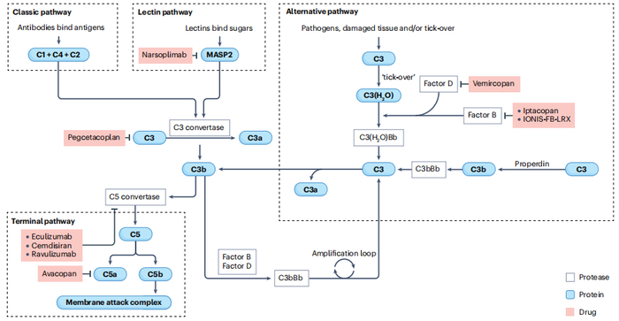 近年来,越来越多的病理学、生物化学、遗传学研究表明,补体在IgA肾病的发病机制中起着重要作用。在IgAN患者肾活检组织中,系膜区除免疫球蛋白的沉积,还伴有补体C3、凝集素、C4d成分的沉积,并且患者低补体C3的水平常与预后不良相关。鉴于补体活化与IgA肾病发病和进展之间的紧密联系,补体抑制剂正在成为未来治疗高风险IgA患者的重要研发方向。