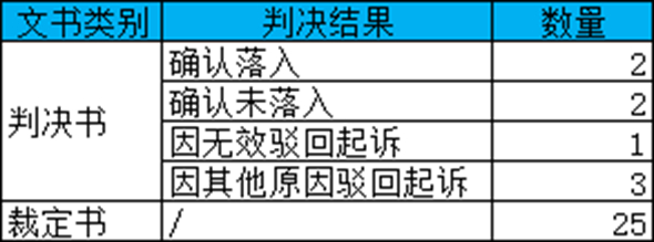 2023年12月25日,笔者通过威科先行以及聚法数据库,使用关键词“药确认是否落入”进行查询和对比分析,共查询到与专利链接纠纷相关的是否落入专利保护范围之诉的案件共计33个,其中判决8个,裁定25个。8个判决中确认未落入2个,确认落入2个,专利因无效被驳回1个,其他原因被驳回3个。