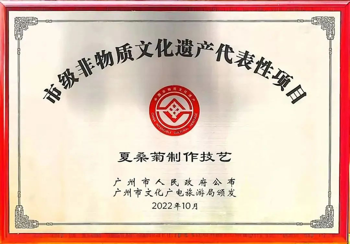 2006年,“传统手工技艺星群夏桑菊凉茶配方”经国务院批准,被列入“国家级非物质文化遗产”, 成为老字号焕发新活力和供给侧结构性改革的典范。2022年“夏桑菊制作技艺”成功入选广州市级非遗代表性项目名录。