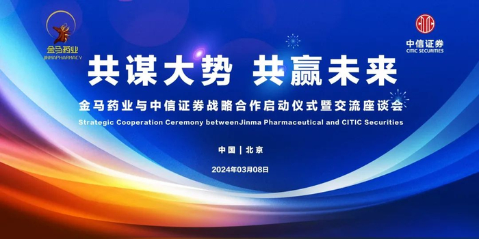 本次《共谋大势 共赢未来》战略合作启动仪式暨交流座谈会的成功举行,加深了金马药业与中信证券之间的长期合作关系,为双方未来发展开启了新的篇章。金马药业与中信证券将基于“共同发展、合作共赢”的原则,持续深化合作,探索创新,共同推动医药产业的进步与发展,为社会贡献更大的价值。