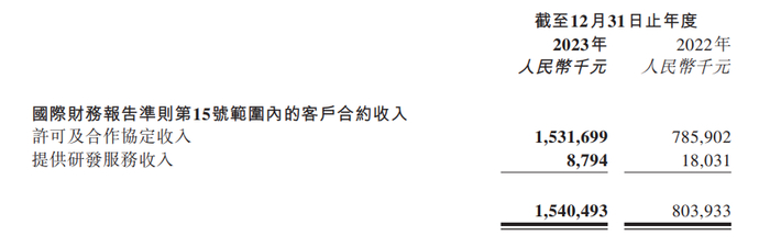 科伦博泰的收入包括许可及合作协定收入,以及研发服务收入。其中前者占比达到99%,较去年同比增长95%。