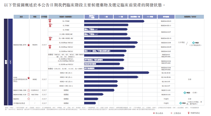 ► SKB264的全球临床开发也在加速推进中,默沙东正在开展3项关键3期临床试验,评估单药用于经治EGFR突变的晚期或转移性NSCLC、单药用于既往接受含铂化疗及免疫治疗的EC,以及与帕博利珠单抗(K药)联合用于经PD-L1表达大于或等于50%的转移性NSCLC。