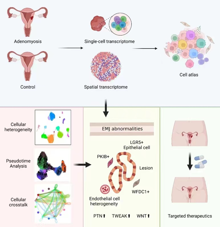 总体而言,该研究通过单细胞RNA测序和空间转录组技术,绘制了子宫腺肌病子宫不同区域包括子宫内膜肌层交接区的转录图谱,揭示了病灶中独特的细胞亚群、功能异常的信号传导以及复杂的细胞相互作用,为制定精确的诊断和治疗策略提供了重要依据。