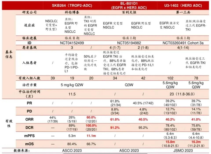 ADC 药物针对EGFR耐药NSCLC有效性比对
