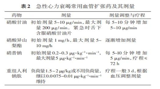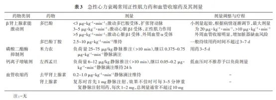 急性心力衰竭常用正性肌力药和血管收缩药及其剂量见表3。
